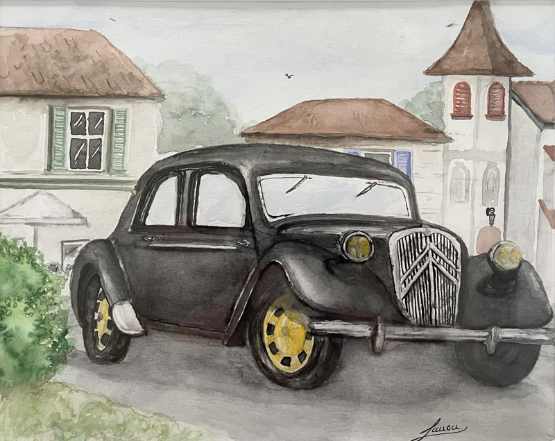 Die erste Aquarellzeichnung: Citroën 11CV "Traction Avant"