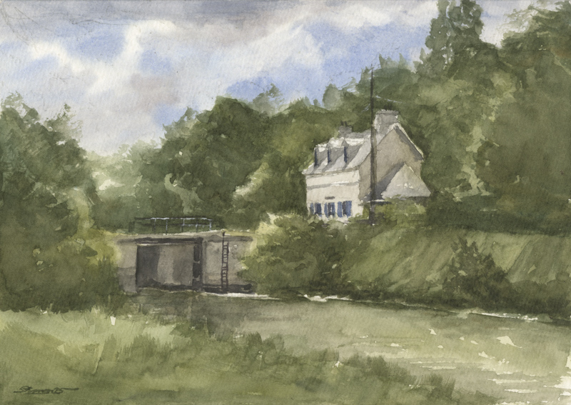 Schleusenhäuschen am Nantes-Brest-Kanal in der Bretagne