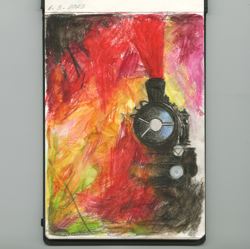Skizzen mit Bleistift, Fineliner, Buntstift und Aquarell.