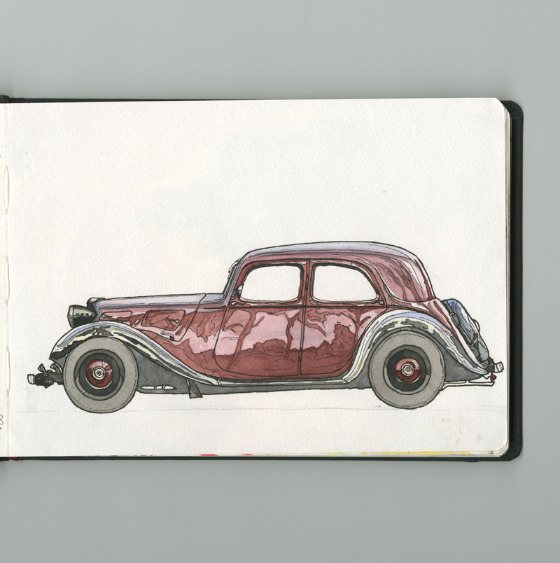 Skizzen mit Bleistift, Fineliner und Aquarell.